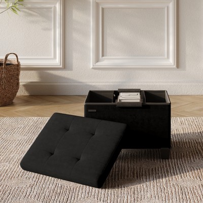 ChicFurnit Ottomans and Benches Round Ottoman Footstool Handwoven Ottoman Floor Step Stool for Living Room, Black, 13.39"*13.39"*7.68"