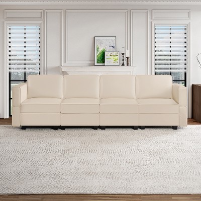 Product Name: ChicFurnit L-Shaped Modular Sectional Sofa Couch with Ottoman Faux Leather Storage Cushions and Cupholders Couches for Living Room, Black/Ginger/Gray