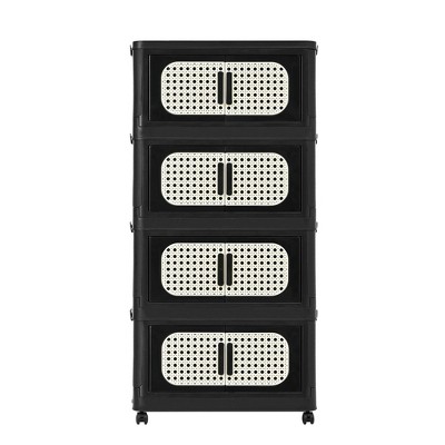 ChicFurnit Utility Storage Cabinets 5 Tiers Multi Use Storage Cabinet Folding Storage Cabinet for Home Spaces, Black, 24.41"*14.76"*14.96"