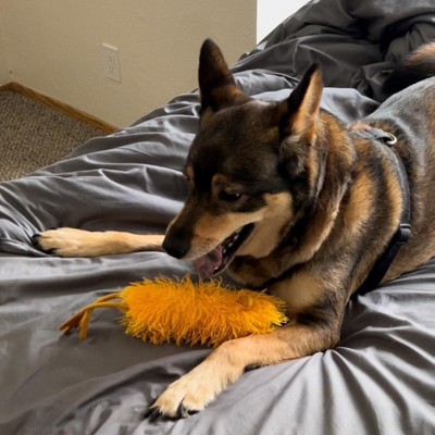 Your cat will zoom around the house kicking and chasing this Chicken Catnip Kicker Cat Plush Toy from Boots & Barkley™. Designed as a fluffy yellow chicken with a beak and textured feet, this kicker toy for cats features a crinkly texture your feline friend is sure to love. Plus, it's filled with catnip inside to get them extra excited for energetic play.