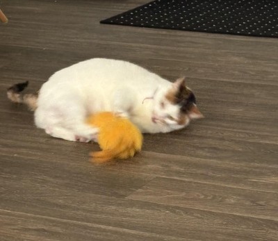 I’m not sure what it is with yellow toys for my cat but she LOVES it. If you’re thinking about getting it, just get it 😂