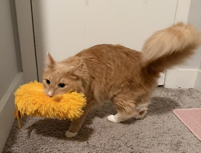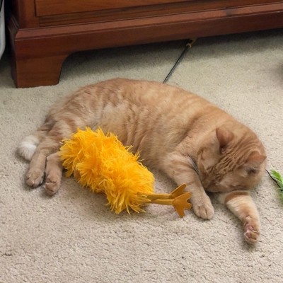 I never review things but my cat loves this toy so much I have to give it 5 stars. He carries it with him whenever he goes, he brings it to bed with him. He LOVES this chicken. I have to buy like 5 more just in case 😂