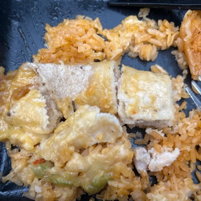 I liked the idea but none of this dish had much flavor. The tortillas break apart and got soggy before you can eat 2 bites, really mushy everything. The chicken was missing. And Ned's just a tad more seasoning. Rice need s bit more flavor as well. Nice portion though.