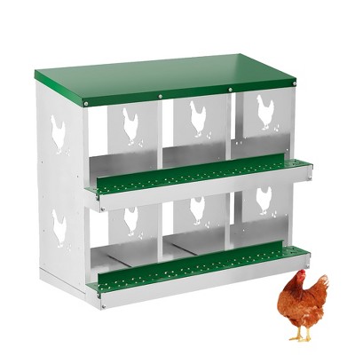 Specification:Name: Chicken Nesting BoxesMaterial: Galvanized SteelSize:6 Compartment: 32.09” L x 17” W x 26.57” H8 Compartment: 42.72” L x 16.93” W x 26.57” H10 Compartment: 53.54” L x 16.93” W x 26.57” H