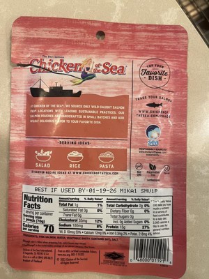 Perfect quick protein snack. I bring this with my to work for lunch, when I buy a green salad, I add to my salad and it’s great! Good flavor and I save money. On days I want a quick meal and stay healthy, these packs come in handy. Sometimes when I’m feeling generous, I’ll add a pack to my pups dog food bowl and he love it.