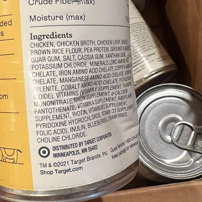 I have no problem with the food itself, my dog loves it. The issue is with Target, of the 6 cans that I purchased and was delivered to my home, FOUR had dents/can damage, the box it came in was fine so it was not the delivery driver. Whoever decided to intentionally select dented cans to send to me should have thrown in a gift card or at least given me a discount for damaged goods!!!