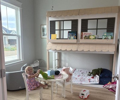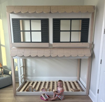 This bed is so sweet. I can’t wait to decorate it for Christmas and put little wreaths in the windows. My girls love it! I love that they can’t really fall because of the house wall and the ladder doesn’t go very high anyways. We were pleasantly surprised by the quality of this bunk bed. I would highly recommend this bunk bed :)