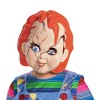 - AUTHENTIC KIDS CHUKY OUTFIT: Chucky costume includes detailed jumpsuit and attached long sleeve shirt and a half mask designed to look just as creepy as Chucky in the movies.