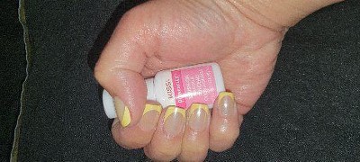 Step 3: GLUE - moving from thumb to pinky, apply a small dot of glue to the base of the tip and the finger nail.