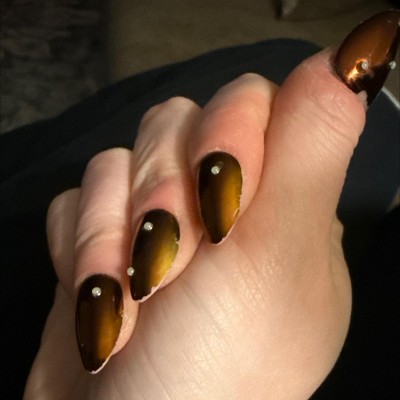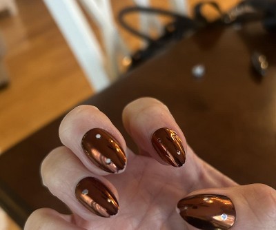 Prepare for people to crave your look. This design is a bronzy, chocolate chrome laced with metallic embellishments. Bold, glossy, and unapologetically fashionably late.