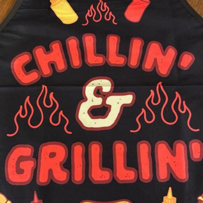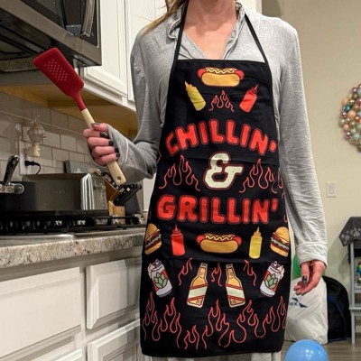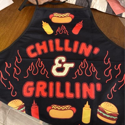 Chillin and Grillin Apron Funny Backyard Summer BBQ Kitchen Smock - Crazy Dog Bakeware For Foodies