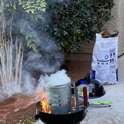 Works perfectly! I don’t like the idea (or smell) of using lighter fluid on my charcoal so this was a solid solution! Perfect for my mini grill that I also got from Target. I only had to fill it halfway so it has enough space to fit enough charcoal for a regular sized grill. I love this thing! Makes pre-heating quick and easy!