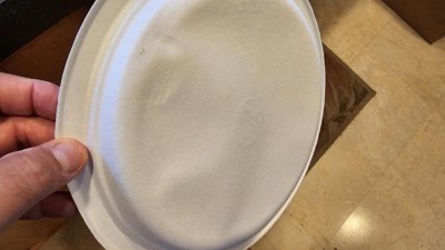 Ope! Sounds like a party foul on our part. Here's the truth—Chinet Classic® products are made from pre-consumer recycled material and pressed into form. We love using recycled materials, but it means we are constantly re-evaluating and optimizing the manufacturing process. Recently, all Chinet Classic® molded fiber tableware transitioned to a new Oil & Grease Resistant (OGR) barrier technology. Because of that, you didn't get our best product, and we apologize. We are working to correct the issue. In the meantime, feel free to contact a representative by email at MyLife@mychinet.com or call 1-800-847-4129. Thank you!