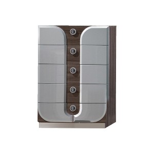 Modern 5-Drawer Chest Generous storage tames wardrobe clutter and daily essentials. Smooth-glide drawers open quietly for effortless access. Clean silhouette complements modern, transitional, and classic décor. Durable construction stands up to everyday use. Space-smart profile maximizes floor area in small rooms. Refined hardware and proportions create a polished, elevated look