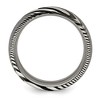 Crafted for strength and style, this Damascus steel wedding band stands out with bold character. Made from distinctive Damascus steel, this 8 mm wide ring showcases the material’s signature patterning and a sleek polished finish. A black accent adds depth and contrast, while the flat edges and half-round shape blend classic comfort with modern appeal. Designed with a standard fit for everyday wear.