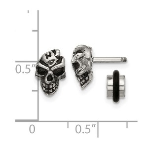 Add a bold touch to your everyday style with these polished and antiqued stainless steel stud earrings. Measuring 10 mm in length and 6.5 mm in width, these earrings feature a rugged finish and secure screwback closures for all-day comfort and durability. A perfect pair for those who appreciate a mix of modern shine and vintage detail.
