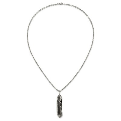 This 24-inch themed necklace features a polished and antiqued stainless steel pendant for a bold, vintage-inspired look. The detailed charm measures 44 mm in length and 23 mm in width, suspended from a sturdy 4 mm cable chain secured with a lobster clasp. With a 6 mm wide, 10 mm long bail, this piece combines durability and style, making it a standout accessory for everyday wear or special occasions.