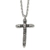 Chisel Stainless Steel Antiqued and with Black Crystal Large Cross Pendant on a 24" Cable Chain Necklace