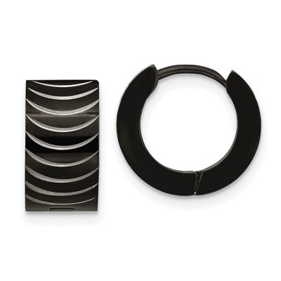 Sophisticated and sleek, this gunmetal IP-plated stainless steel hoop earring features a unique polished and brushed finish. Measuring 12 mm in length, 2.8 mm in width, and 2.5 mm thick, it offers a modern edge with a secure hinged post, notch, and lock closure for comfortable wear. Durable and stylish, this single hoop is perfect for adding a subtle yet distinctive touch to any look. Metal Weight 2.79 gram.