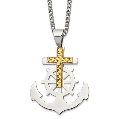 Chisel Stainless Steel Brushed and Polished Large Cross Pendant on a 24" Curb Chain Necklace