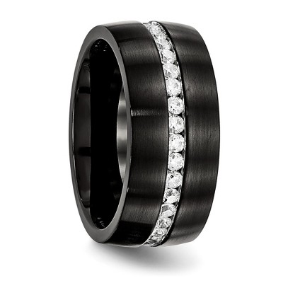 Bold and refined, this 10mm wedding band is crafted in durable stainless steel with a polished and brushed finish for a sleek two-tone look. Set with synthetic cubic zirconia, it offers the brilliance of a diamond with modern appeal. The standard-fit design ensures all-day comfort, making it a standout choice for a wedding band or statement accessory.