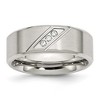 Chisel Stainless Steel Brushed and Polished with Cubic Zirconia 8mm Beveled Edge Band Ring - 1 of 4