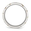 This sophisticated wedding band features a brushed finish over durable stainless steel, enhanced with luxurious gold-tone IP plating for a warm, elegant look. Measuring 8mm wide with a slim profile under 3mm thick, the ring offers a comfortable standard fit, making it perfect for daily wear and symbolizing lasting commitment.