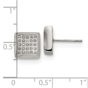 These polished stainless steel cluster button earrings feature a compact 10mm size, perfect for adding subtle sparkle to any outfit. Designed with and push-back closures for secure, comfortable wear. Sold as a pair, they make a versatile accessory for everyday or special occasions