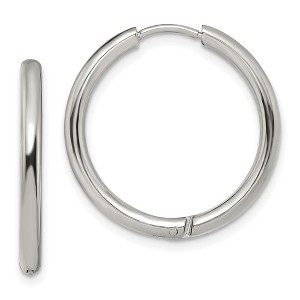 Compact yet impactful, these 25mm stainless steel huggie hoop earrings deliver sleek sophistication with a polished finish that enhances their modern appeal. Designed with a 2.5mm thickness, they offer just the right amount of boldness while remaining lightweight. The hinged hoop style features a post, notch, and lock closure for secure and comfortable wear. Crafted from durable stainless steel, these versatile earrings are ideal for everyday looks or subtle evening elegance. Metal Weight 4.88 gram.