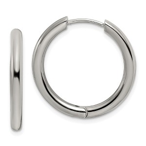 Make a sleek style statement with these polished stainless steel huggie hoop earrings. Designed with a smooth, high-shine finish, they offer a timeless look with a modern edge. Measuring 25mm in length, 26mm in width, and 3mm in thickness, these hoops deliver a refined silhouette that’s perfect for both casual and dressy occasions. The hinged construction and post, notch & lock closure provide secure and comfortable wear all day long. Metal Weight 7.32 gram.