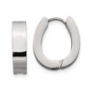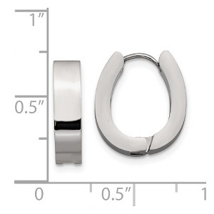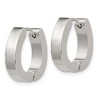 Crafted from durable stainless steel, these earrings feature a polished finish that delivers a brilliant shine. Measuring 15 mm in length and 14 mm in width with a comfortable 4 mm thickness, they are designed in a hinged huggie style for a snug fit around the earlobe. The post, notch, and lock closure ensures secure wear, making them a perfect choice for daily elegance or a polished night-out look.