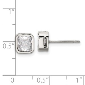 Add timeless sparkle to your everyday look with these polished stainless steel stud earrings. Featuring two brilliant white synthetic cubic zirconia stones in a classic setting, they're secured with a friction back for all-day comfort and shine