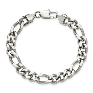 Classic style meets everyday durability in this 8.25" Figaro link bracelet. Crafted from polished white stainless steel, it features bold 9 mm wide links with a smooth, high-shine finish. The secure lobster clasp provides reliable wear, while the timeless Figaro design adds a touch of refined edge. Perfect for layering or wearing solo, this bracelet is a versatile staple for any jewelry collection.