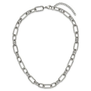 Make a bold fashion statement with this 18-inch fancy chain necklace, crafted from polished stainless steel for a sleek, radiant finish. The 9mm wide chain is secured with a durable lobster clasp and includes a 2-inch extender for an adjustable fit (16"–18"). With its eye-catching design and lasting shine, this necklace is perfect for elevating both everyday outfits and special occasion looks.