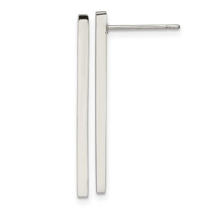 Sleek and timeless, these polished stainless steel drop earrings add just the right amount of shine to your everyday or evening ensemble. Measuring 30 mm in length and 2 mm in width, their slim silhouette creates a graceful, lightweight feel. Finished with a secure post & push back closure for easy wear.