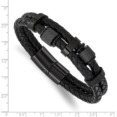 Chisel Stainless Steel Polished Black IP-plated and Black Leather 8.25" Bracelet - 2 of 4Chisel Stainless Steel Polished Black IP-plated and Black Leather 8.25" Bracelet - 3 of 4Chisel Stainless Steel Polished Black IP-plated and Black Leather 8.25" Bracelet - 4 of 4
