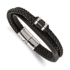 Chisel Stainless Steel Polished Black Leather Multi Strand 8.5" Bracelet - 2 of 4Chisel Stainless Steel Polished Black Leather Multi Strand 8.5" Bracelet - 3 of 4Chisel Stainless Steel Polished Black Leather Multi Strand 8.5" Bracelet - 4 of 4