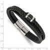 Chisel Stainless Steel Polished Black Leather Multi Strand 8.5" Bracelet - 1 of 4