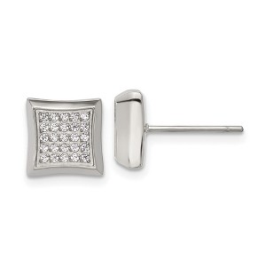 Make a stylish statement with this men’s polished stainless steel stud earring, featuring 50 sparkling white synthetic cubic zirconia stones. Measuring 9 mm in both length and width, this stud offers a bold yet refined look. The post and friction back closure ensures a secure and comfortable fit for everyday wear. Crafted for durability and modern appeal, this single stud is perfect for adding a touch of shine to any outfit. Metal Weight 4.2 gram.
