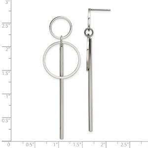 Make a statement with these sleek and modern drop and dangle earrings, expertly crafted from polished stainless steel. With a bold 65 mm length and 20 mm width, these earrings are designed to turn heads. The and push back closure ensures a secure, comfortable fit, while the highly polished finish adds a radiant shine. Sold as a pair, these earrings are perfect for adding elegance and edge to any outfit.