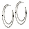These polished stainless steel C-hoop earrings measure 54.5 mm in both length and width with a slim 2 mm thickness. Designed for a sleek and modern look, they feature a secure post & push back closure and are sold as a pair