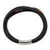 Chisel Stainless Steel Polished Multi-Strand Black Leather 8.5" ID Bracelet