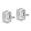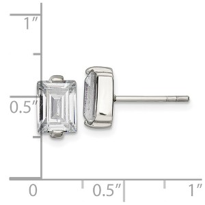 These polished stainless steel stud earrings feature two synthetic rectangular Cubic Zirconia (CZ) stones, measuring 10.21 mm in length and 5.99 mm in width. Sold as a pair with secure and push-back closures, they offer a classic and elegant look perfect for everyday wear or special occasions