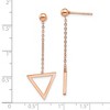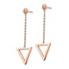 Bring elegance and edge together with these IP rose-tone plated stainless steel drop earrings. With a polished finish and soft rose hue, they offer a chic, modern twist on a classic silhouette. Measuring 42mm in length and 14.5mm in width, these earrings are designed to stand out while remaining lightweight and wearable. The post and push-back closure provides a secure and comfortable fit, making them perfect for both day and evening wear. Durable and stylish, they’re a must-have for any jewelry collection. Metal Weight 2.05 gram.
