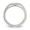 This polished stainless steel signet ring features a 2.5 mm band width and head height, with a thickness of 1.7 mm. It offers a standard fit and a top measuring 9 mm in length and 10 mm in width, blending classic design with sleek craftsmanship