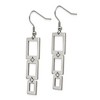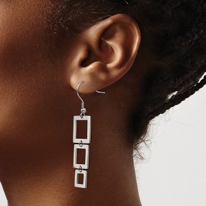 These polished stainless steel drop earrings feature a sleek 50 mm length and 13 mm width, offering a bold yet elegant silhouette. Designed with a French wire closure for easy wear, they bring graceful movement and shine to any outfit. Sold as a pair