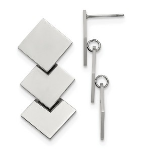 These polished stainless steel drop earrings measure 36.9 mm in length and 1 mm in width, offering a sleek and elegant look. Sold as a pair, they feature a secure and push back closure for comfortable wear. Perfect for adding a subtle touch of sophistication to any outfit