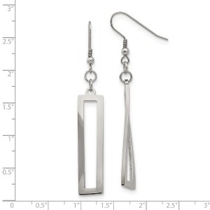 These polished stainless steel drop earrings feature a length of 38.7 mm and a width of 1.6 mm. Sold as a pair, they come with elegant French wire closures for a secure and comfortable fit. Perfect for adding a refined touch to any outfit