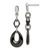 Make a bold statement with these 14 mm drop & dangle earrings, crafted from polished stainless steel and accented with sleek black ceramic details. The contrasting materials offer a modern, sophisticated look, while the post and push-back closures ensure a comfortable and secure fit. Perfect for elevating both casual and formal outfits.