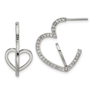 Add sparkle to your look with these polished stainless steel C-hoop earrings featuring white crystal stones. Measuring 25mm in length and 12.5mm in width, these earrings are designed for both left and right ears. Equipped with secure post & push back closures and friction backs, they are sold as a pair—perfect for adding elegant shimmer to any outfit.